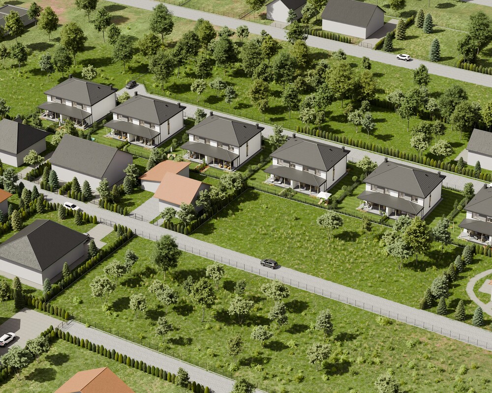 Nova Owocowa to osiedle zaprojektowane z dbałością o detale, które mają znaczenie w codziennym życiu. Proste linie bryły, naturalne akcenty na elewacjach i stonowana kolorystyka sprawiają, że całość jest nowoczesna, ale jednocześnie nieprzemijająca – nie znudzi Ci się po kilku sezonach. Każdy dom ma komplet miejskich mediów: prąd, gaz, wodę oraz kanalizację, więc od początku mieszkasz wygodnie i bez zmartwień. To przemyślana przestrzeń, w której wszystko działa tak, jak powinno.
